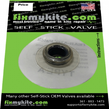 From the leaders in kite repair technology, Fixmykite.com’s Self-Stick Valves will stick on all bladders. Simply peel and stick to make a fast and easy repair on an old bladder or attach to a brand new bladder. The specially formulated adhesive is incredibly durable making for a permanent repair.